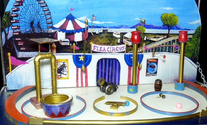 If you would like to "jump" right in to the wonderful, and strange world of flea performance (prepare to have your reality altered), this MECHANICAL circus operates from a pocket remote control!