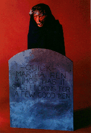 a shriek up and over the back of the tombstone to meet them face to face!